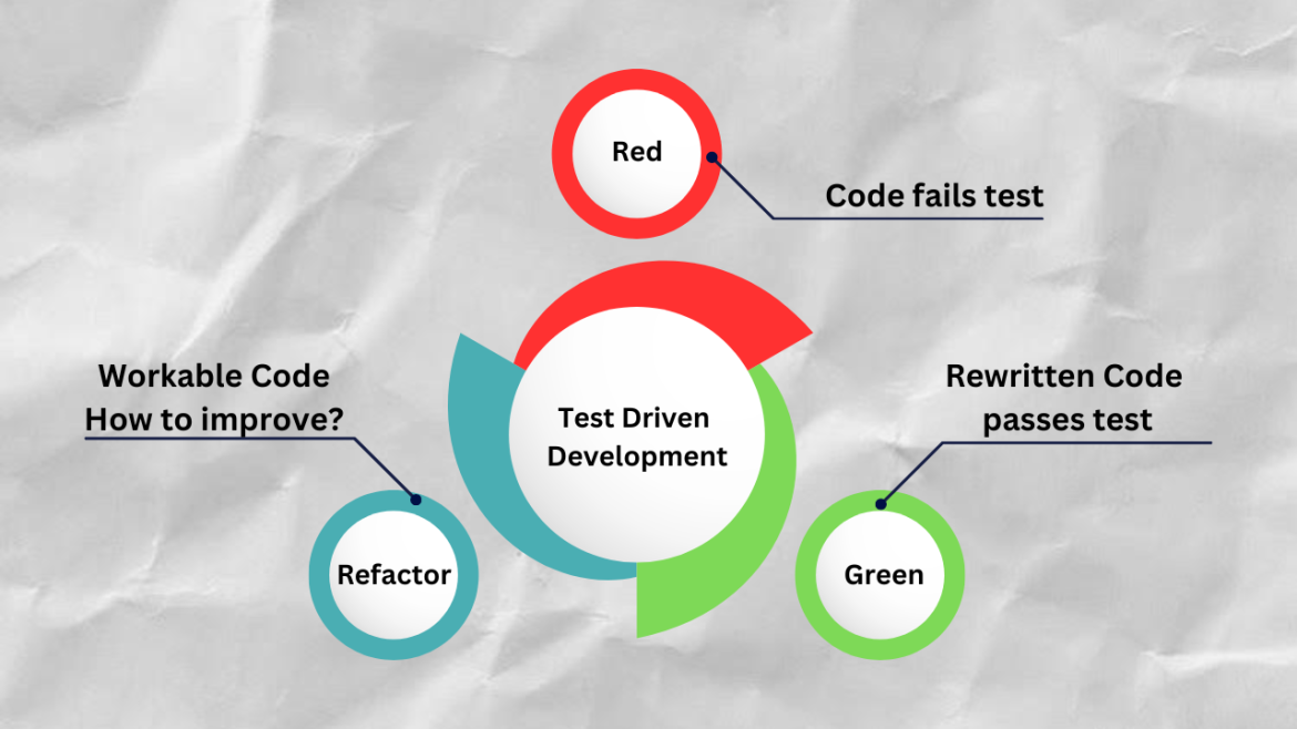 - Red: Ein Test wird geschrieben, der zunächst fehlschlägt (roter Status).